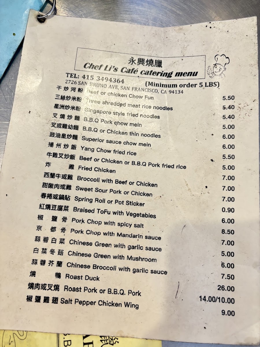 Welcome to Chef Li's Cafe Hk B.B.Q, a delightful Chinese restaurant nestled in San Francisco's Excelsior neighborhood. Since opening on August 1, this eatery has quickly become known for its splendid Hong Kong-style barbecued dishes.